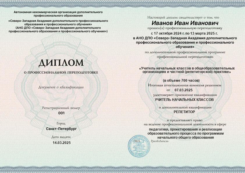 - 2 квалификации: Учитель начальных классов + Репетитор